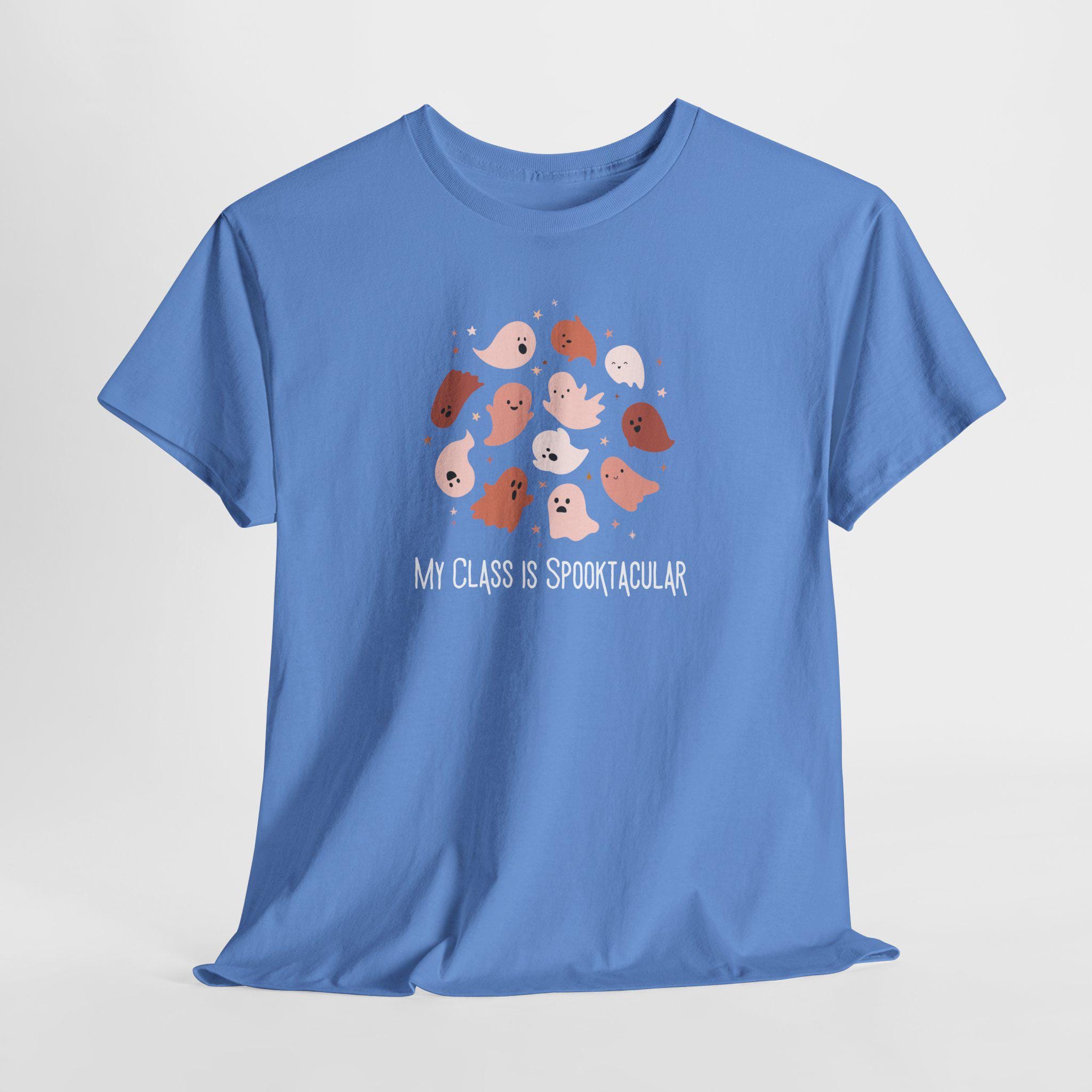 Embrace the spirit of fun and creativity with this Unisex Heavy Cotton Tee! Designed to inspire joy, this shirt features a playful graphic that declares, "My Class is Spooktacular," making it the perfect addition to your wardrobe for Halloween celebrations and classroom activities. Whether you’re preparing for spooky season or just want a cozy everyday tee, this shirt fits seamlessly into casual outings or festive gatherings. Ideal for teachers, students, and anyone who enjoys a little seasonal flair, it radiates warmth and excitement, making it a great gift for Halloween or year-round humor. With its superior fabric and stylish cut, this tee effortlessly combines comfort and personality!