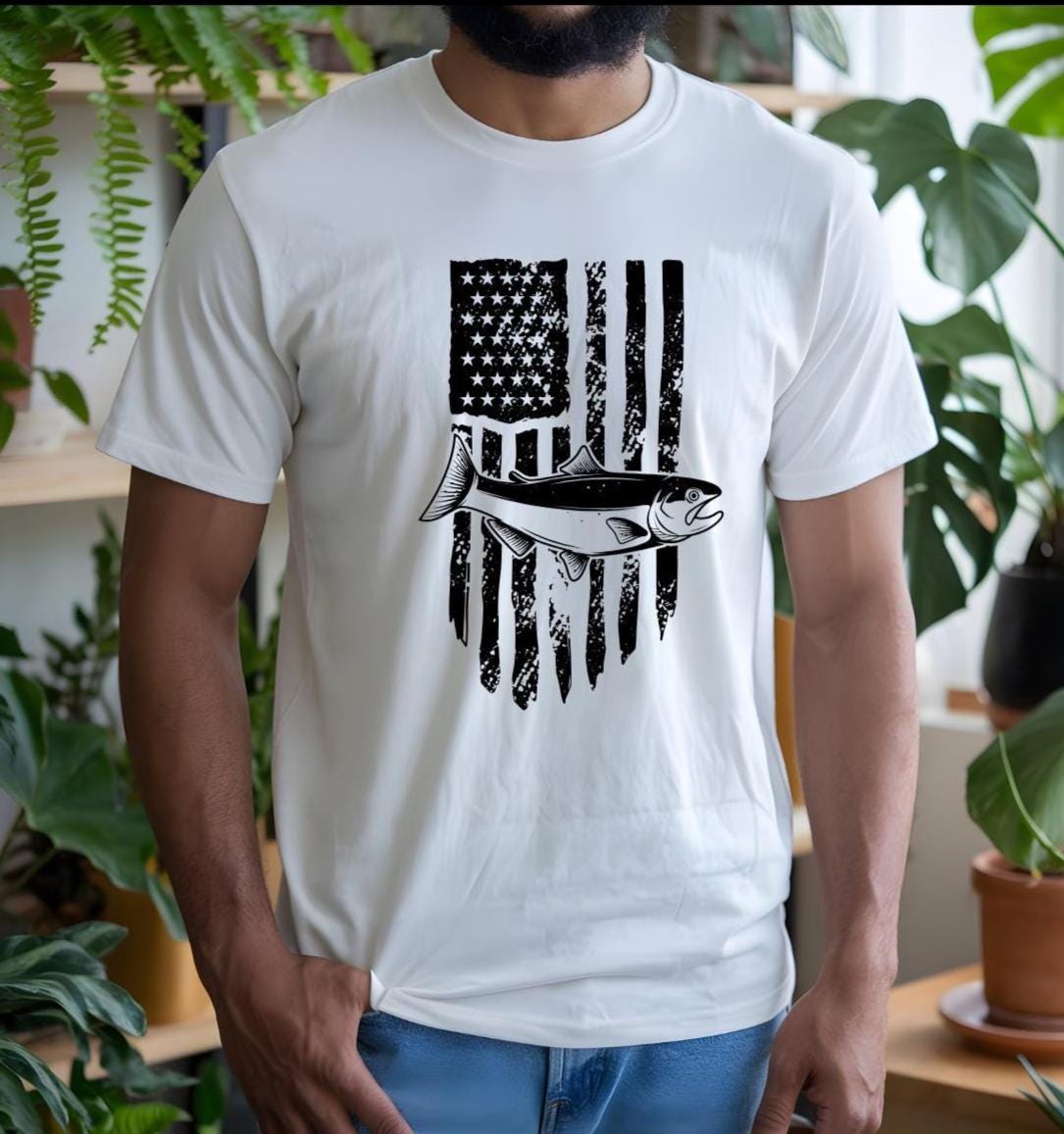 Introducing this versatile Men's Tee, perfect for those who appreciate style and comfort. Crafted from soft cotton, it offers a lightweight feel that's ideal for everyday wear. The unique design features a striking graphic, seamlessly combining patriotic elements with a love for fishing, making it a conversation starter wherever you go. This tee is great for outdoor enthusiasts, casual get-togethers, or laid-back weekends. Whether you're planning a summer barbecue or celebrating patriotic holidays, this shirt is a fitting choice. It's designed for those who enjoy the outdoors and want a relaxed fit, making it suitable for men of all ages who appreciate tasteful apparel. Celebrate events like Father's Day, Independence Day, and more with a gift that resonates with hobbies and passion.