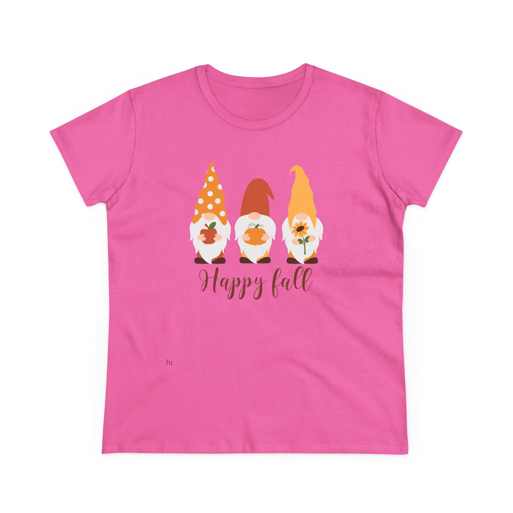 Embrace the cozy vibes of the season with this Women's Midweight Cotton Tee, perfect for adding a touch of autumn charm to your wardrobe. Featuring adorable gnome designs, this tee beautifully captures the essence of fall festivities, making it an ideal choice for seasonal gatherings, Thanksgiving celebrations, or simply a day out enjoying the crisp air. Its semi-fitted style offers comfort and versatility, easily pairing with jeans, skirts, or even cozy pajama pants for those relaxing weekends at home. Perfect for women who appreciate cute, seasonal fashion, this tee is a delightful addition to any fall collection, ensuring you celebrate the season in style.