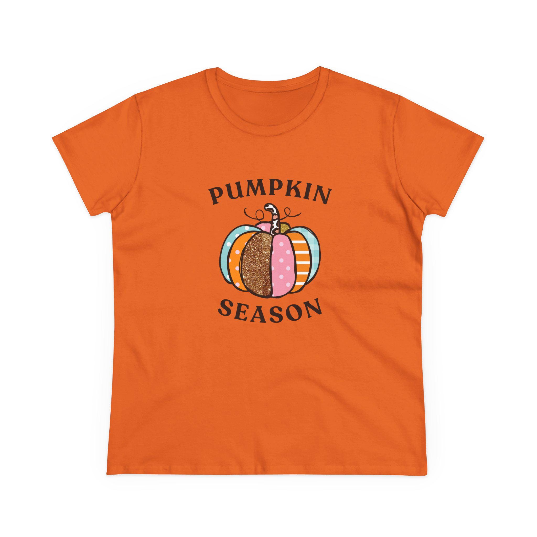 This Women's Midweight Cotton Tee captures the essence of autumn with its playful design, perfect for embracing the cozy vibes of pumpkin season. Ideal for casual outings or festive gatherings, this tee adds a splash of seasonal cheer to any wardrobe. Whether you're attending a fall festival, hosting a Halloween party, or simply enjoying a pumpkin-spiced latte at your favorite café, this shirt will keep you feeling comfortable and stylish. It’s a fantastic choice for women who adore fall fashion and celebrate seasonal festivities. Great for gifting during Halloween or Thanksgiving, it's the perfect way to express your love for the season!