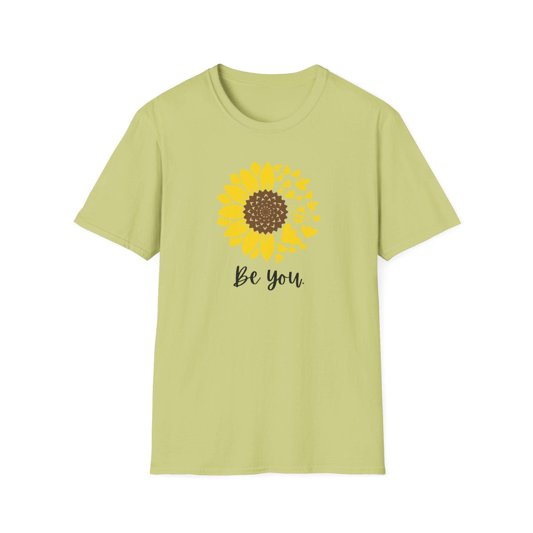 This unisex softstyle t-shirt is perfect for anyone looking to express their individuality with a touch of warmth and positivity. The lively sunflower graphic paired with the empowering message "Be You" creates a cheerful vibe, making it a great addition to your wardrobe. Ideal for casual outings, gatherings, or simply lounging at home, this t-shirt celebrates personal style while providing comfort. It’s a thoughtful gift for friends or family who cherish self-expression, making it perfect for birthdays, anniversaries, or even just because!