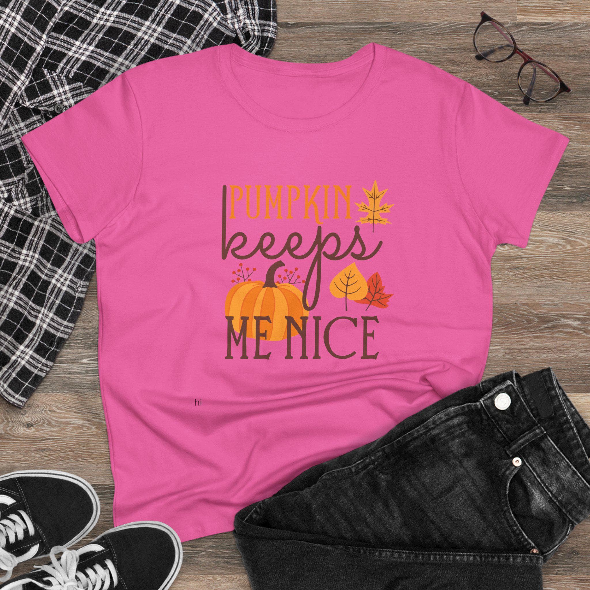 This Women's Midweight Cotton Tee combines comfort and style, making it an essential addition to any wardrobe. With its playful pumpkin design, this tee embraces the cozy vibes of autumn, perfect for lovers of fall festivities. Ideal for casual outings, cozy family gatherings, or pumpkin spice coffee dates, it brings warmth and charm to any occasion. Whether you're celebrating Halloween, Thanksgiving, or just enjoying the beauty of the season, this shirt makes a delightful gift for friends and family who appreciate seasonal fashion. It's perfect for those who cherish comfort without compromising style.