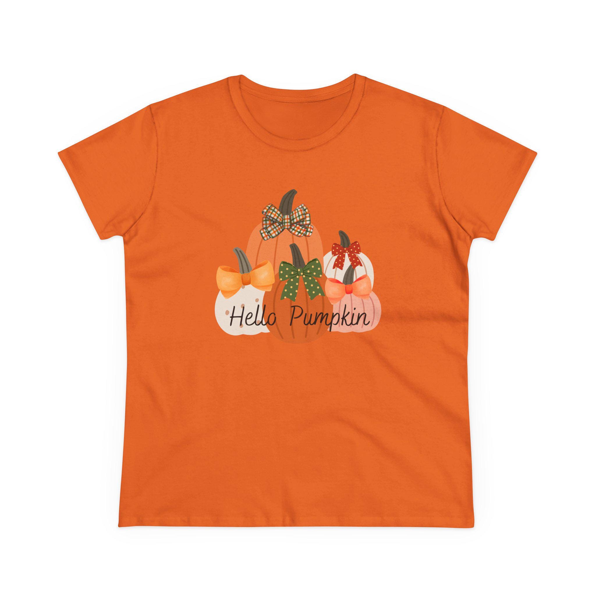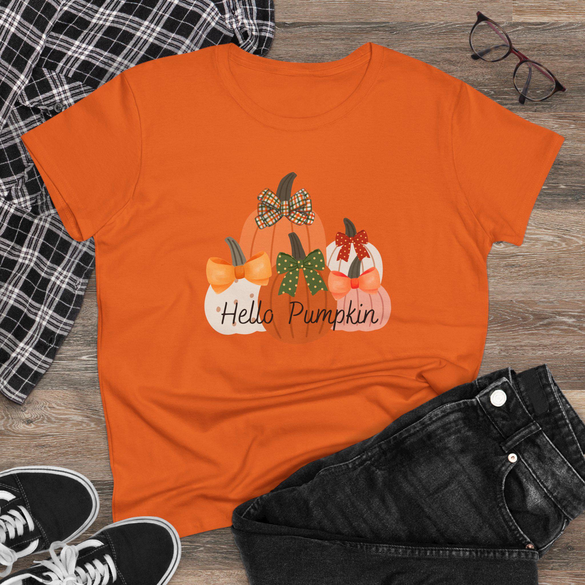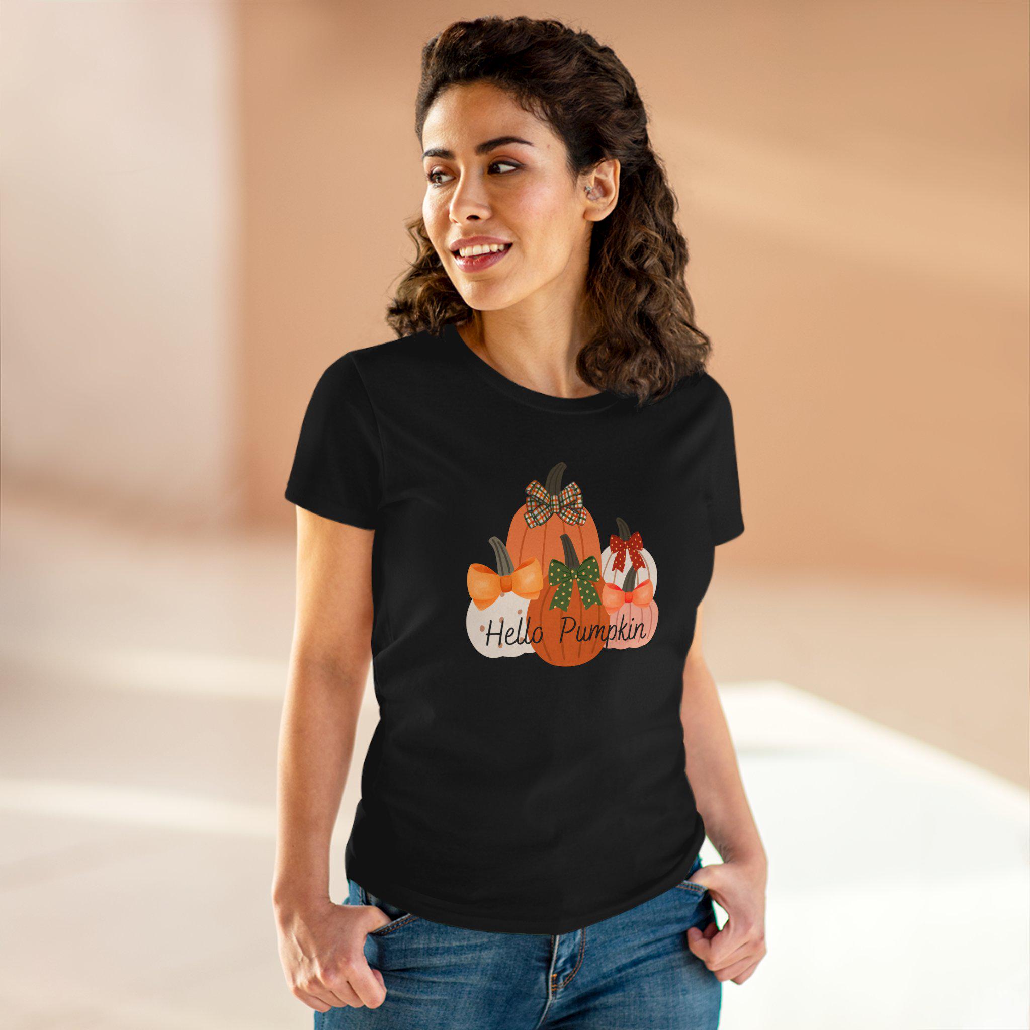Embrace the cozy vibes of autumn with this charming Women's Midweight Cotton Tee. Adorned with an adorable pumpkin design, it effortlessly evokes the warmth of fall festivities and harvest celebrations. Perfect for casual outings or cozy gatherings, this tee adds a playful touch to your everyday wardrobe. Ideal for anyone who loves seasonal styles, it particularly shines during Thanksgiving, Halloween, or any fall-themed event. Slip it on for pumpkin-picking adventures or cozy nights at home – it’s the versatile piece your wardrobe has been craving!