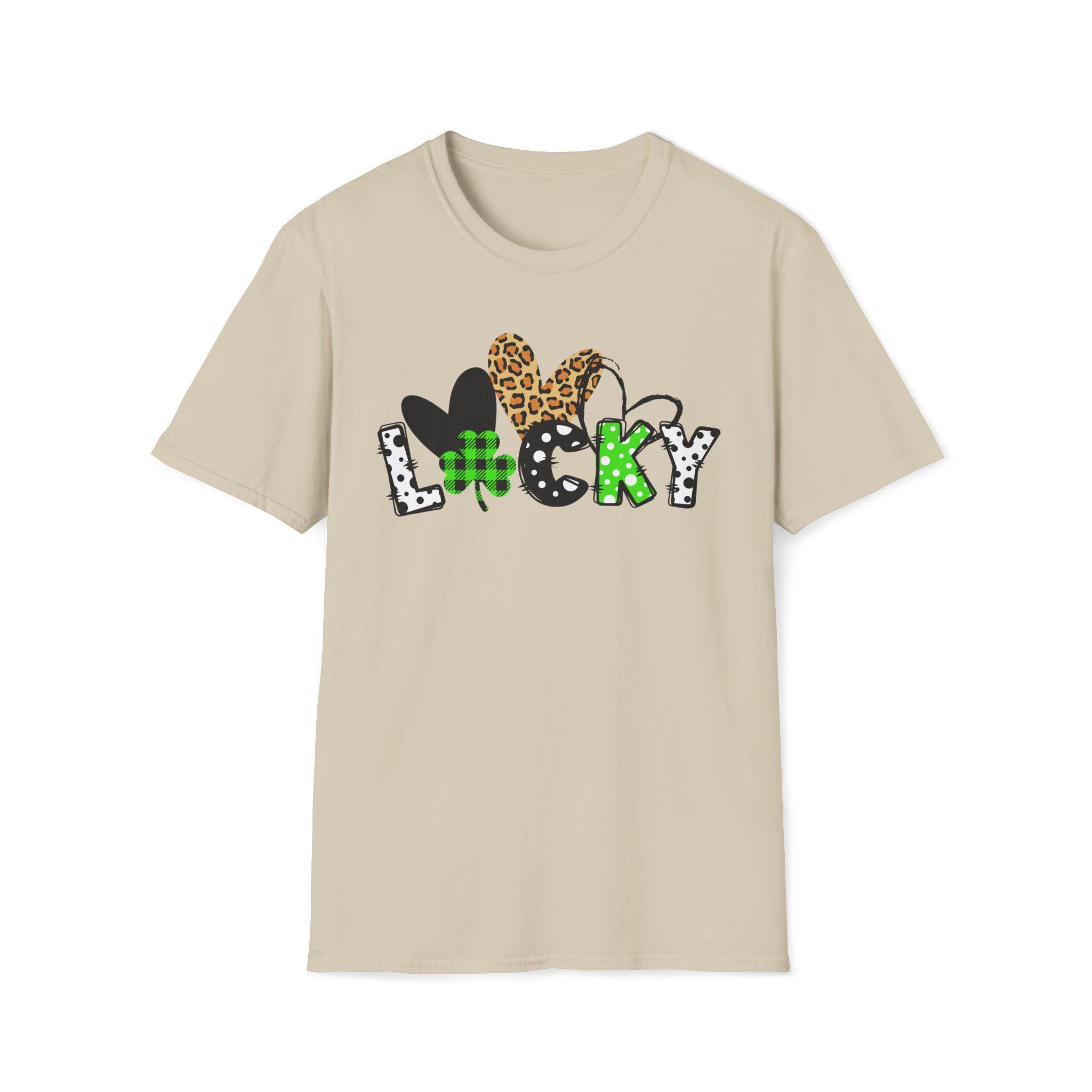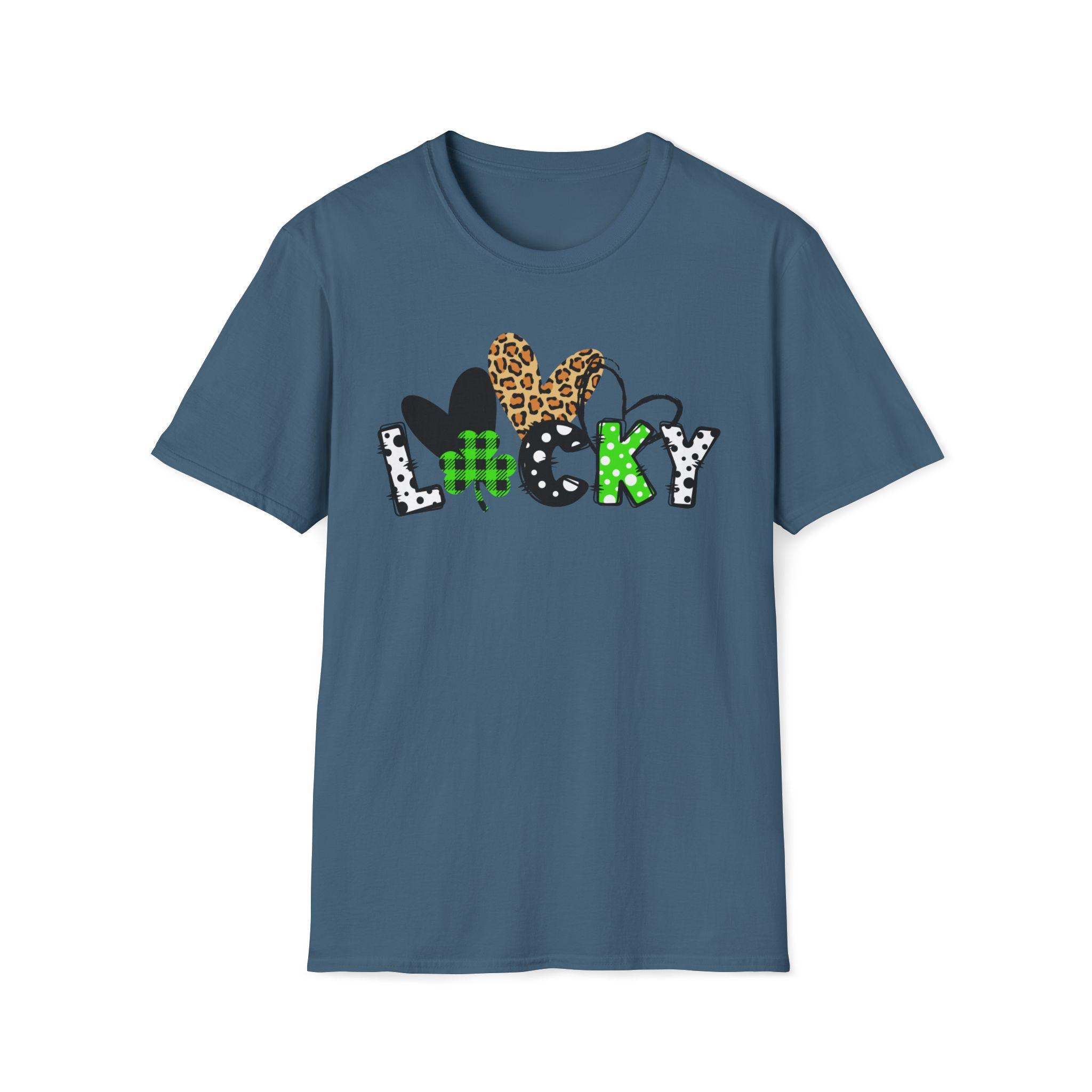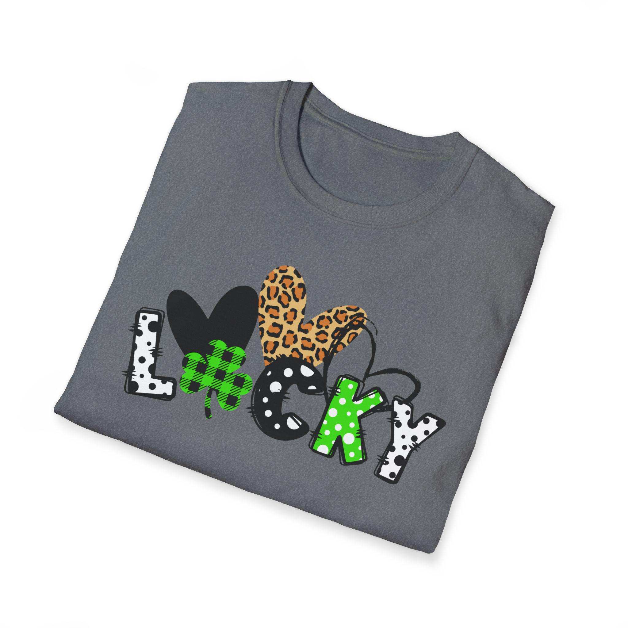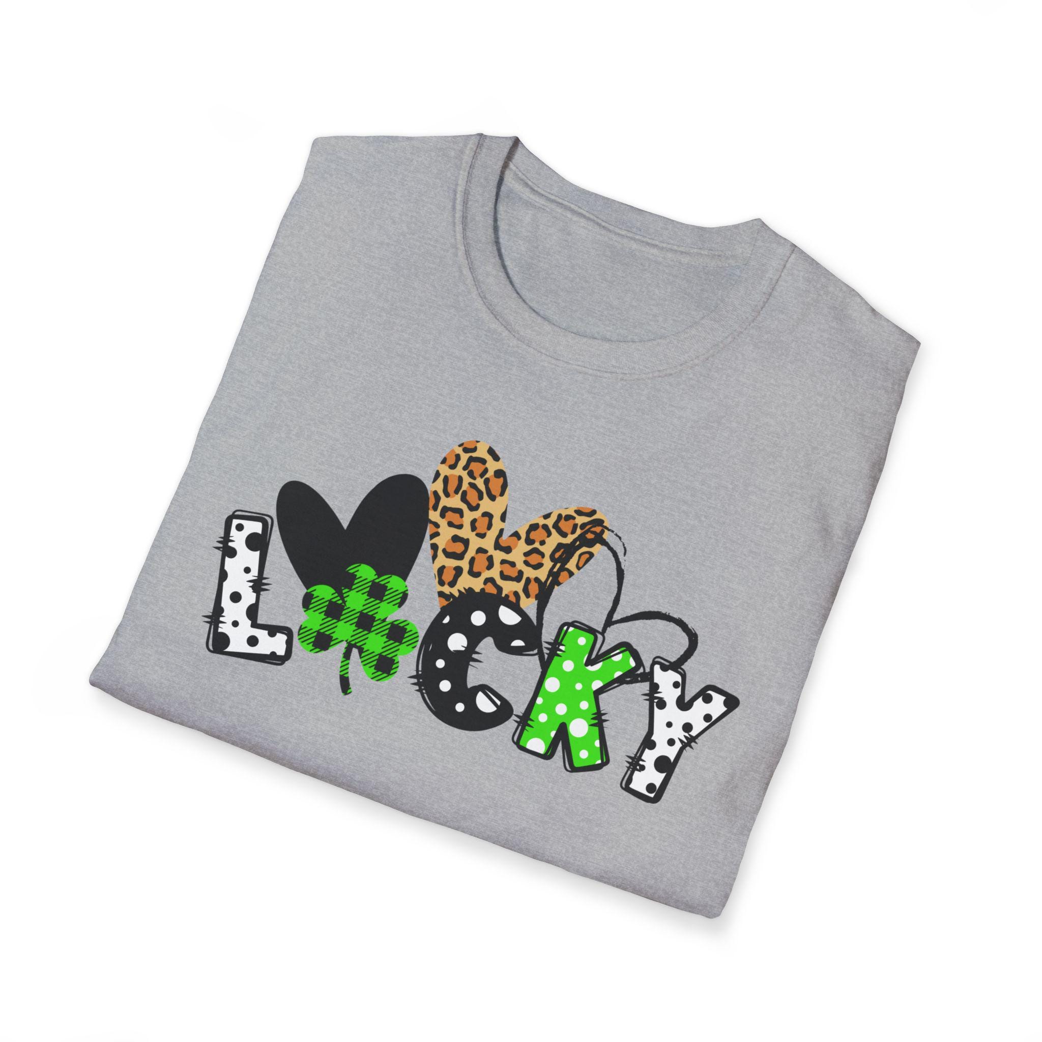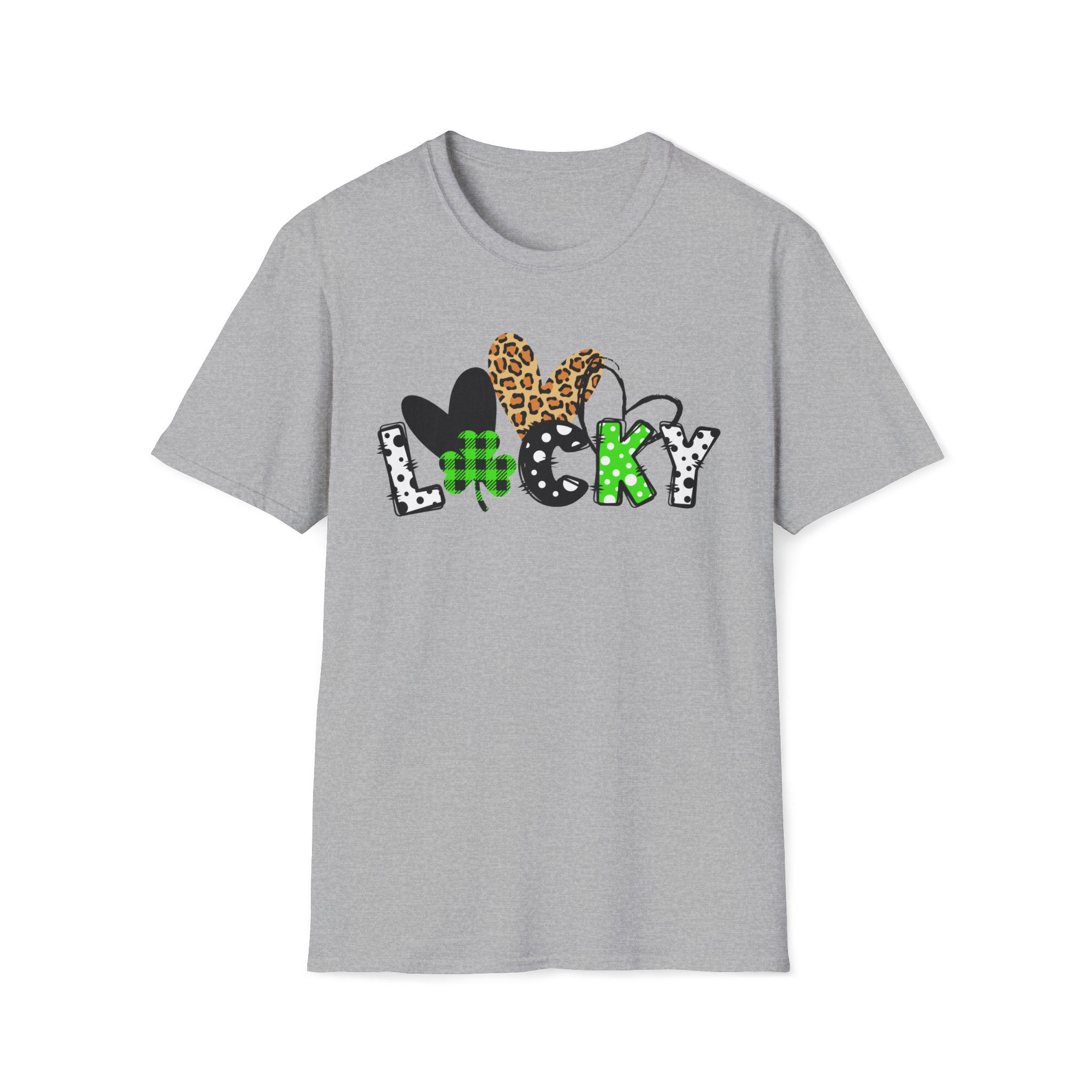 This lightweight crew-neck tee brings a playful, modern spin on St. Patrick’s Day flair. Bold mixed-pattern letters spell out “LUCKY,” each character layered with a different texture—dalmatian dots, leopard print, classic black, and a bright green plaid shamrock—so the design feels lively and handcrafted. Wear it when you want an approachable, spirited look that reads fun without trying too hard. The shirt’s soft feel and clean silhouette make it easy to layer under a denim jacket or wear solo while you weave through parades, casual meetups, or cozy pub nights. It’s the kind of tee that starts conversations and adds a cheeky, stylish note to an ordinary day.