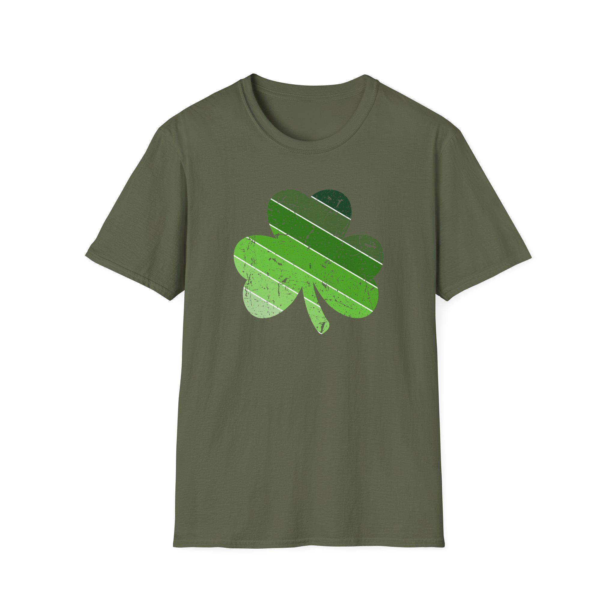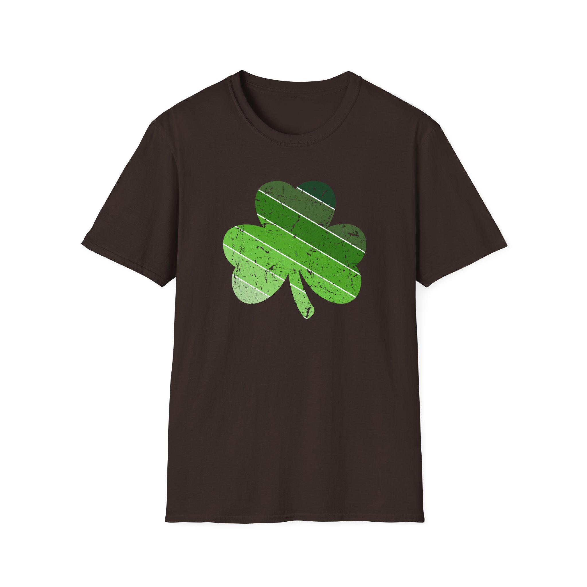 A lightweight, lived-in tee that brings a quiet nod to luck and the outdoors. The soft ring-spun cotton drapes easily and breathes all day, while the worn, distressed shamrock print adds a vintage, road-trip feel — like a lucky find from a flea market or a keepsake from a springtime walk. It layers under jackets, pairs with well-worn jeans, and sits comfortably at backyard gatherings or casual pub nights. Subtle details — tear-away label, ribbed crew neck, and shoulder tape — keep the fit steady and comfortable so the shirt becomes one you reach for again and again.