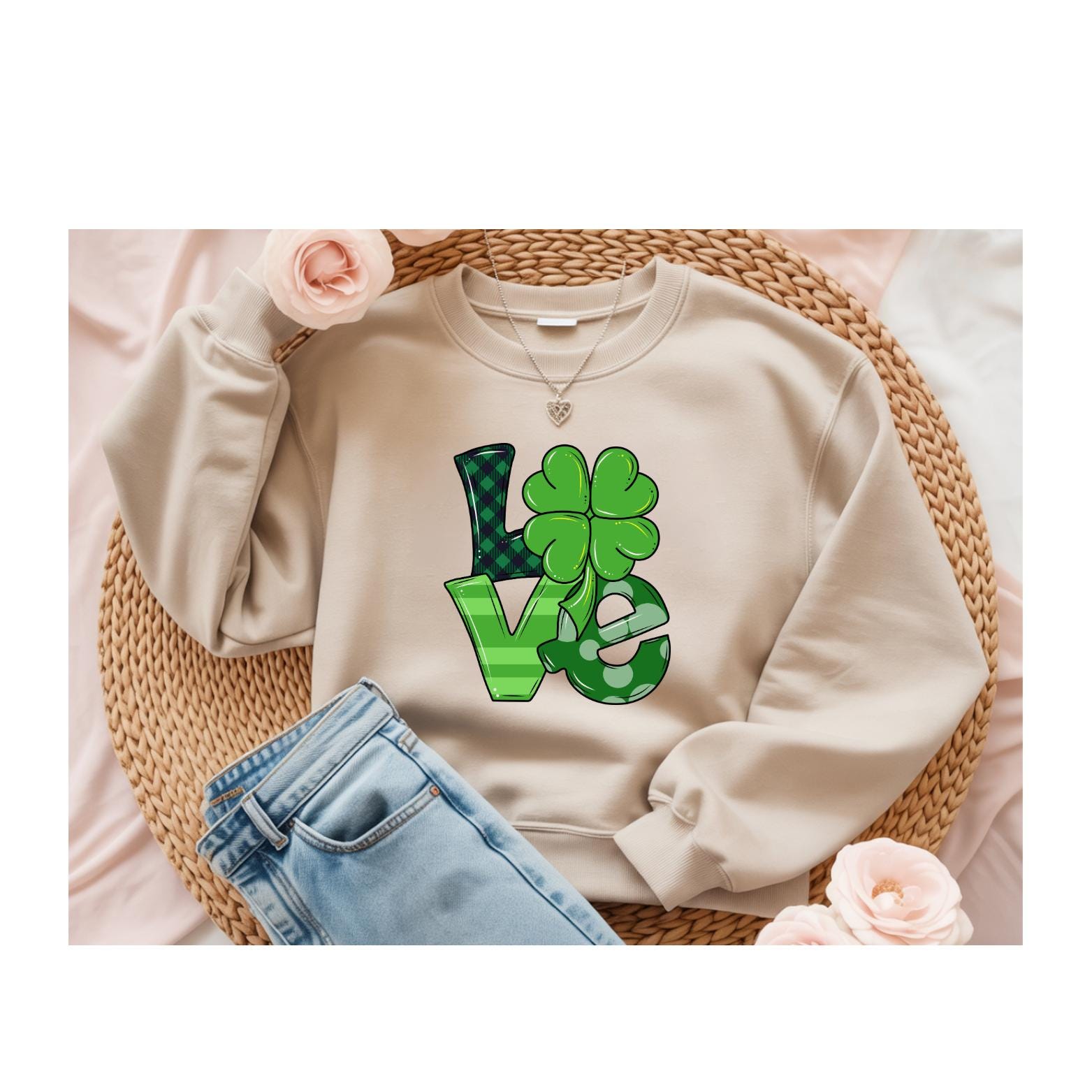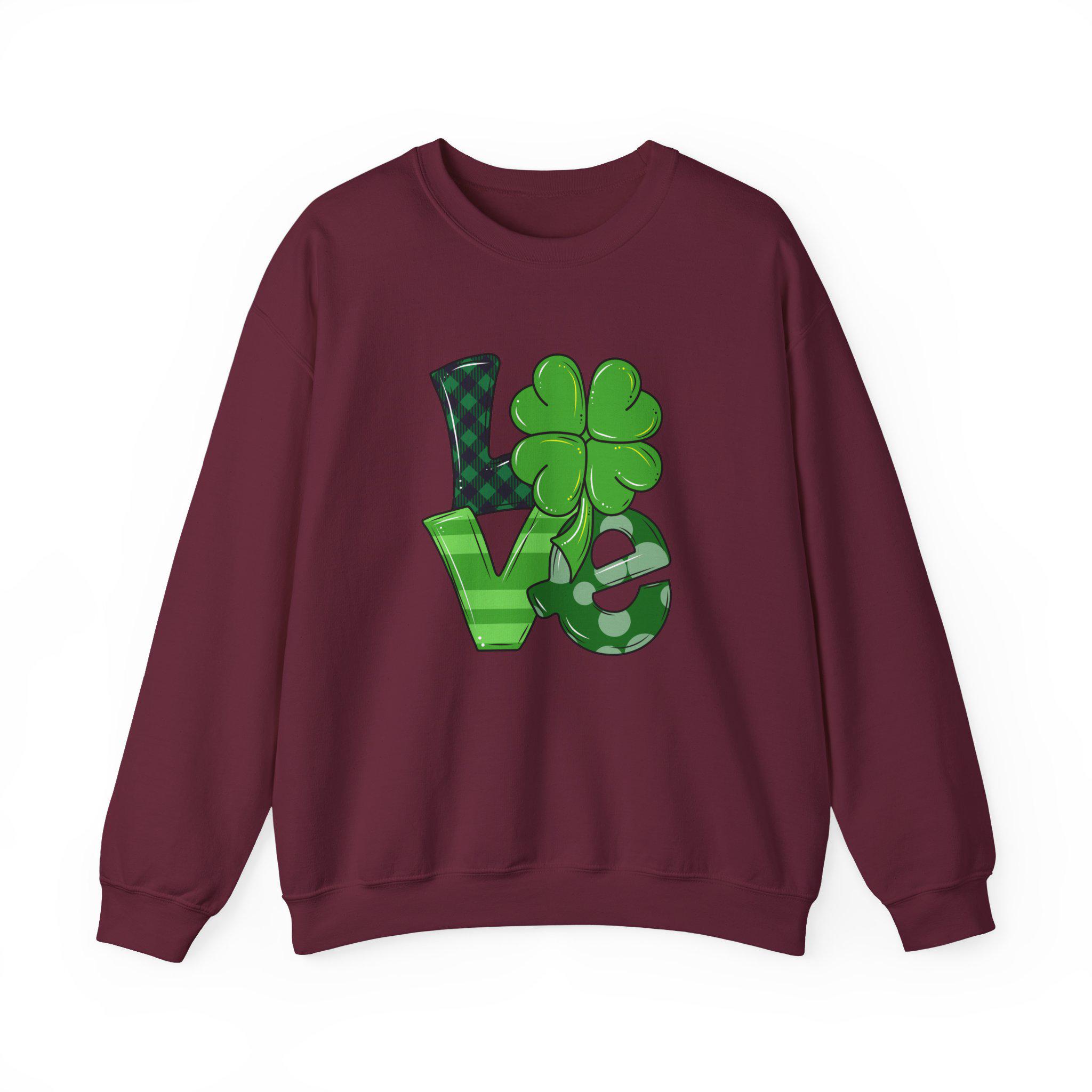 A cozy, crewneck sweatshirt that brings a playful, lucky-luck charm to everyday wear. The white sweatshirt features a bold green “LOVE” graphic where the “O” is a clover — cheerful and slightly whimsical without feeling childish. The midweight 50/50 cotton-poly blend drapes cleanly with a classic fit and ribbed collar, cuffs, and hem. Subtle durability details—double-needle stitching at stress points and a tubular, no-side-seam construction—mean this sweatshirt holds its shape and resists wear. Soft inner neck labeling and OEKO-TEX certified dyes make it pleasant against skin and kinder to the environment. Wear it for laid-back gatherings, casual holiday moments, or when you want a soft, spirited layer that reads both seasonal and everyday.